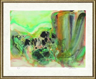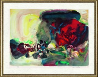 Zhu Dequn(1920-),Born in Jiangsu Province, China. 1935 Admitted to Hangzhou Academic Art College .1949 Moved from Nanjing to Taipei 1954 first solo exposition at Zhongshan Hall in Taipei.1955 left Taipei for France to achieve further accomplishments. 1956 Attended Paris Spring Salon, won Silver Prize. 1957 First solo exhibition in Paris.1963 Art Critic George Boudaille delivered important essay on the work of Chu Teh-Chun. 1964 Invited to attend “Int-ernational Modern graphic exposition” held by the Carnagy Museum in Pittsburg, USA. 1969 Special halls for his works in Brazil-St. Polo 10th International Graphic Ex-hibition.1979 Published by Mini Museum, written by Bo Ruan Yu, an authority on literary critics, composer and poet. 1982 Works created from 1955 to 1982 were exhibited in Andley. Mary Modern Art Gallery, in France. Graphic exhibition of foreign citizen of Chinese origin held in HK art gallery.Works exhibited in the opening exhibition of Duncan City, France. 1983 Invited by HK Chinese University as judge of the art bachelor’s. 1984 Canvas exhibition in Luxemburg’s city-run theatre. 1987 Retrospective exhibition of Chu Teh-chun’s work in the state-run historical museum,Modern France paintings exhibition held in the capital city hall of Israel. 1988 Solo exhibition in the Modern art gallery in Belgium. 1991 Canvas works showed in the FIAC special hall in Paris Modern art expo. 1992 Created a lithograph in Barcelona, Spain. 1999 he was honored as an Art Academician of France, the highest honor ever received by any Chinese artist in the international art world. Chu Teh-Chun made just a few lithographs, including this series of eight poetical renditions.2000 he created a set(6 lithographs) of lithography in IDL working studio in Paris, and published in the world by HOKE ART. 2001 he organized his solo expo in Korea in April and in June, he was honored as chevalier des palms by French education department and in this year’s national day he was honored by French president Jacques Chirac “Chevalier de la Legion d’honneur fran-caise”. Also in this year, he created the second set of litho for Hoke Art and Published in the world. 2002 he organized his solo expo in Taipei Angel Art Gallery. And Hoke Art published his first litho art book. 2003 Hoke Art published the third set of Chu Teh-chun’s litho.(Lot 23,24)